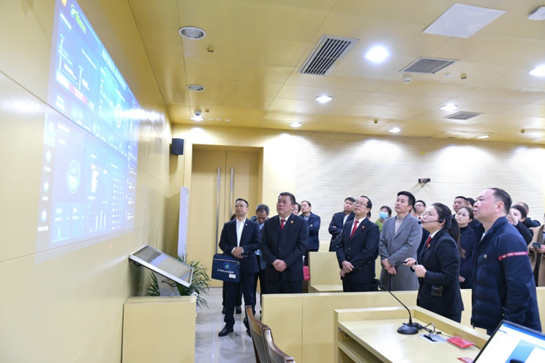 会前,与会人员参观了高新法院创新打造的“近零碳法庭”,工作人员介绍了“近零碳法庭”建设理念、运行模式、能源结构、智能设备、后台数据管理系统等软硬件建设情况,并现场展示了碳排放量的数据采集方式,与会人员现场扫描近零碳场景二维码,“近零碳场景”实时动态展示碳足迹情况,为与会人员对“近零碳法庭”建立了初步印象。