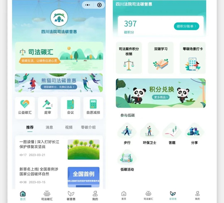 立足司法服务大熊猫国家公园生态环境审判职能,认真组织开展司法调查研究,积极探索包括碳普惠、碳积分、碳账户等在诉讼活动中如何适用等问题,主动对接成都联合环境交易所,打通制约司法服务保障“双碳”工作的信息壁垒。在省法院指导下,研发出可供全省法院使用的“熊猫司法碳普惠”APP,并于首个全国生态日当天正式上线运营。