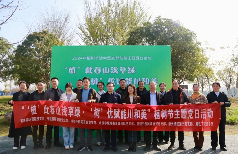 党建引领青山绿,植树添绿当先锋。2024年3月11日,成都铁路运输第二法院党总支联合省法院环资庭党支部、省法院研究室党支部、成都中院环资庭党支部、成铁中院刑事环资团队党支部、成铁中院民事研究党支部、崇州法院第三党支部共5家单位、30名党员组成“添绿”先锋队,在崇州市生态修复教育基地开展“‘植’此春山浅草绿·‘树’优赋能川和美植树”的主题党日活动,以党建引领司法协作,助力生态修复,传播绿色生态理念。