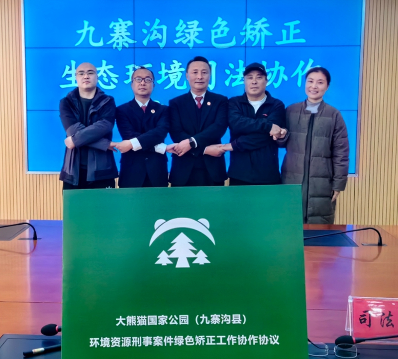 为深入贯彻习近平生态文明思想,全面落实《四川省高级人民法院环境资源审判庭关于在部分环境资源刑事案件社区矫正人员中开展绿色矫正试点工作的通知》,促进绿色低碳发展和生态环境保护理念融入社区矫正工作,实现“恢复性司法实践+社会化综合治理”工作目标,近日,成都铁路运输第二法院与九寨沟县林业与草原局、九寨沟县司法局、九寨沟县人民法院、西昌铁路运输检察院共同签订环境资源刑事案件绿色矫正工作协议。