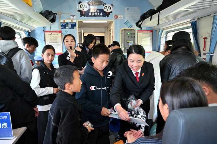 与此同时,成铁二院的法官助理和成都铁路局的工作人员为候车旅客逐一发放民法典宣传手册,并为重点旅客提供帮扶引导服务。从站台到车厢,一路上,法官向旅客讲解并发放《中华人民共和国宪法》《中华人民共和国民法典》等普法宣传手册,帮助旅客深入了解民族政策的基本原则和主要内容,促使旅客形成主动学法、自觉守法、遇事找法、解决问题用法、化解矛盾靠法的法治素养。