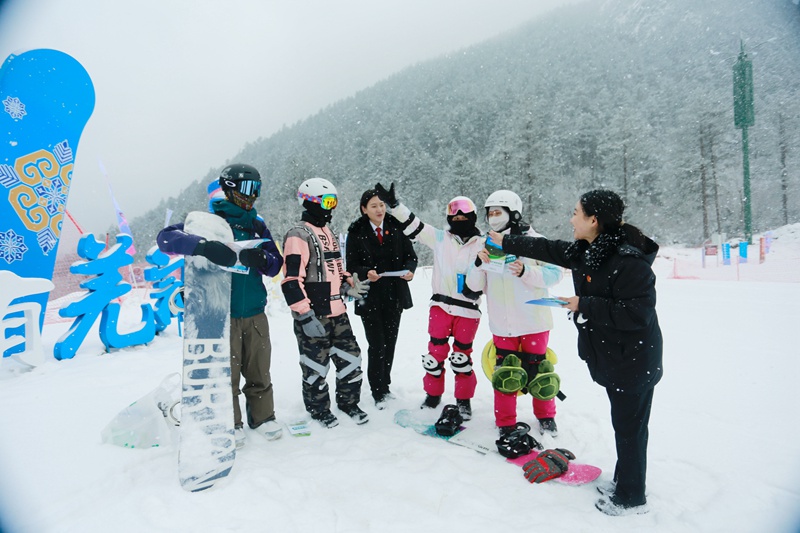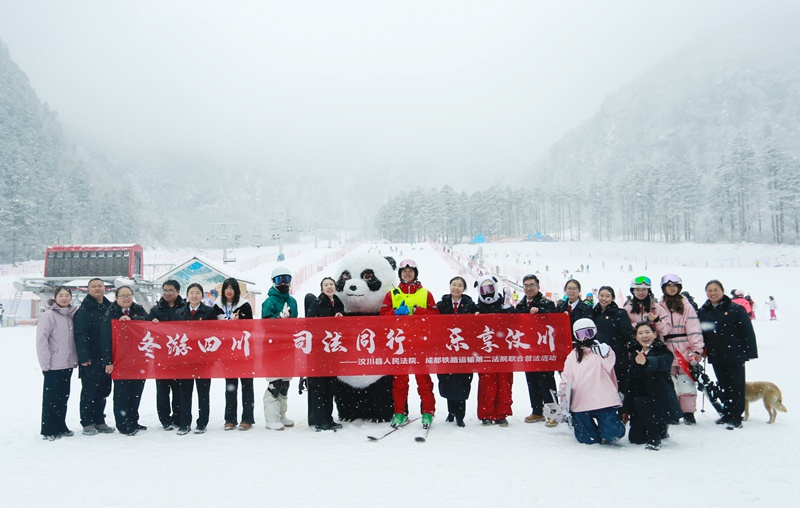 1月7日,在阿坝藏族羌族自治州汶川县羌人谷滑雪场,汶川县人民法院、成都铁路运输第二法院(四川大熊猫国家公园生态法庭)以全省法“冬游四川·司法同行”服务保障文旅融合活动为切入点,率先联合开展了一场以“雪道上的交通规则”为主题的普法宣传活动,巧妙地将普法行动融入这一冰雪盛事之中,让白雪皑皑的滑雪场成为法律知识传播的前沿阵地,为游客们送上一份特殊而实用的“法治礼包”。