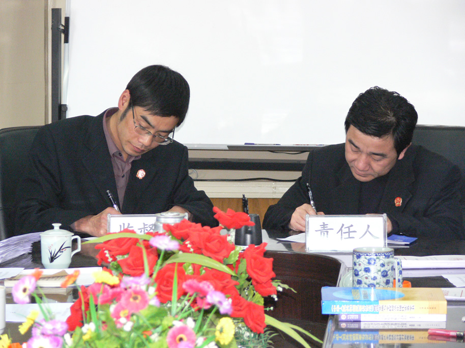 会上,院党组书记、院长花桂荣与班子成员签订了党风廉政建设责任状,班子成员与各部门主要负责人、各部门主要负责人与部门干警签订了党风廉政建设责任状,根据不同的岗位特点将责任内容细化到每个部门和每一名干警。